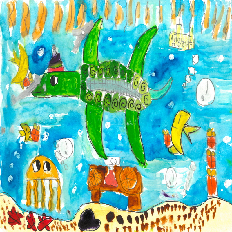 3회 / 3rdKOREA입선 바다쓰레기를 치워요 수상 구분 입선 이름(나이) 서윤희(8세) 작품 제목 바다쓰레기를 치워요 작품 설명 거북이 잠수함을 타고…kidsartadmin2023-08-25